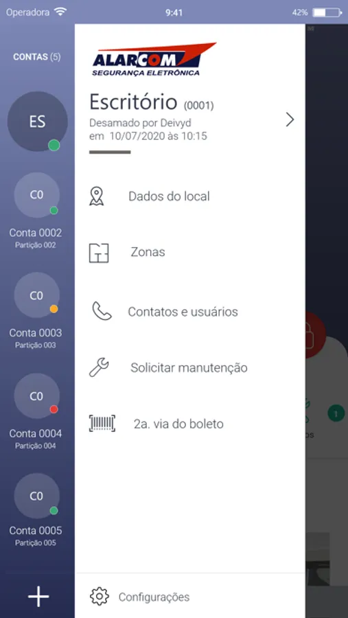 Alarcom é um aplicativo móvel onde o cliente monitorado pode acompanhar diretamente via celular ou tablet todas as atividades do seu sistema de segurança. Por meio do aplicativo, é possível saber o status do painel de alarme, armá-lo e desarmá-lo, visualizar as câmeras ao vivo, verificar eventos e ordens de serviço abertas, além de realizar chamadas telefônicas para contatos cadastrados no seu perfil. É a segurança que você precisa na palma da sua mão.