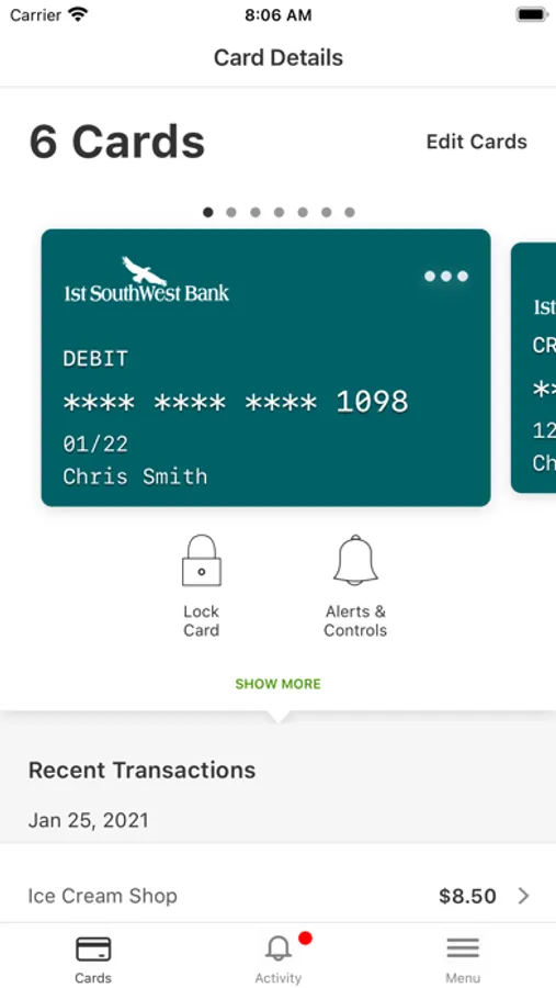 Protect your debit and credit cards by sending you transaction alerts and giving you the ability to define when, where and how your cards are used. Simply download the app to your smartphone, then customize your alert preferences and usage settings to monitor and manage your cards.