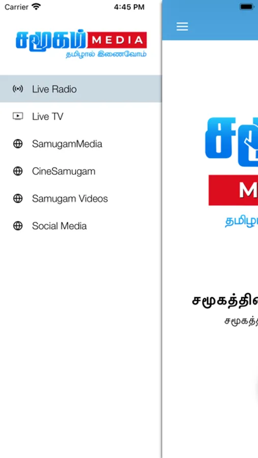 The Samugam media app features 24/7 Live Radio to listen and Live TV to watch the latest Tamil news of Samugam Media channels.