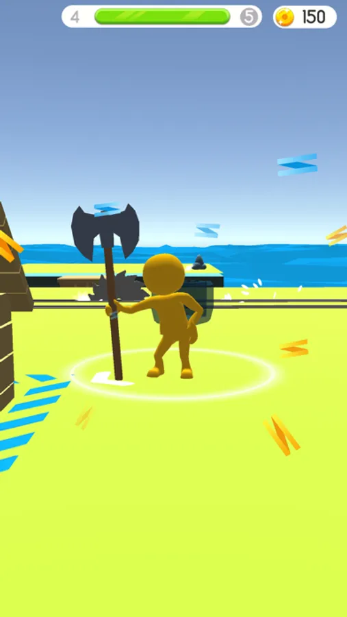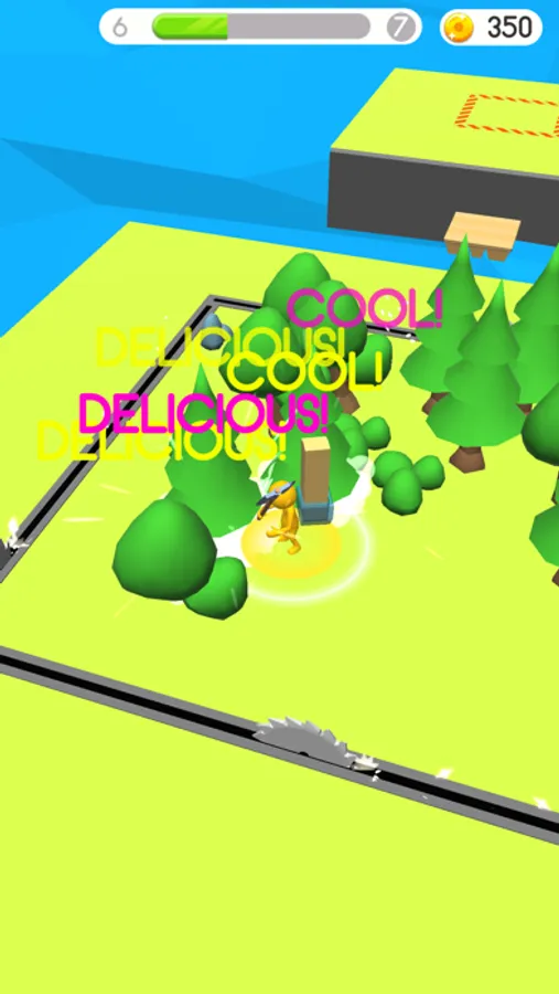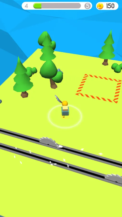 Simple gameplay holding a touch! Move through the levels and cut more and more trees and wood.