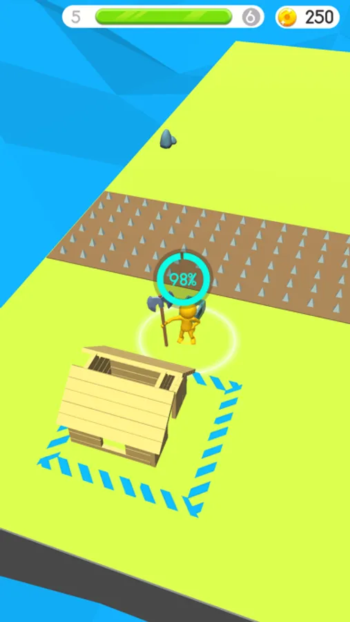 Here you will cut trees and convert them into wooden planks to build a house! Don't forget continuously to wood and build a house for your progression.