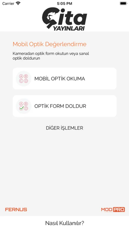 ■ Mobil Optik Değerlendirme uygulaması MOD-PRO'yu açın. Formunuzu okutun.
