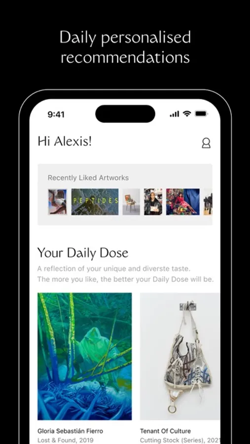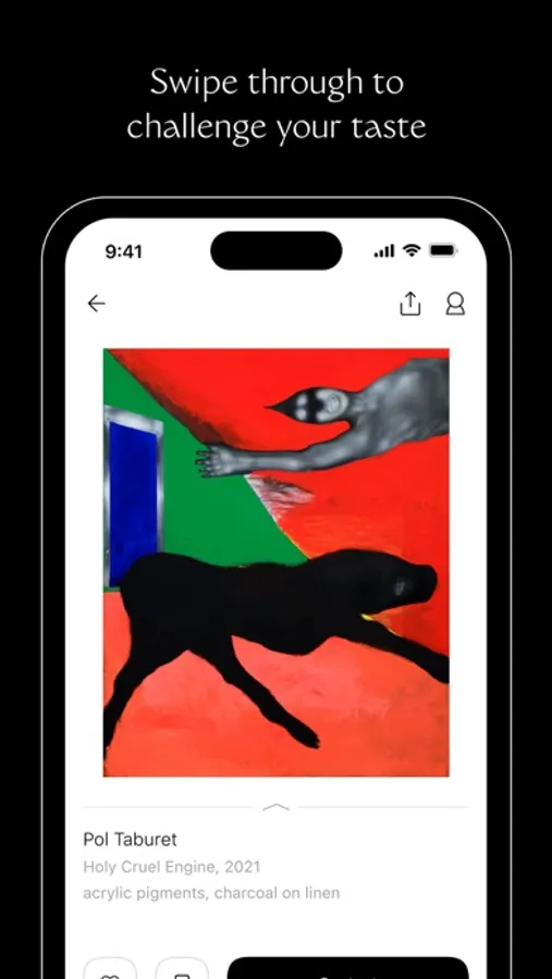 Discover Art: Swipe through a curated selection of contemporary art to broaden your perspective.