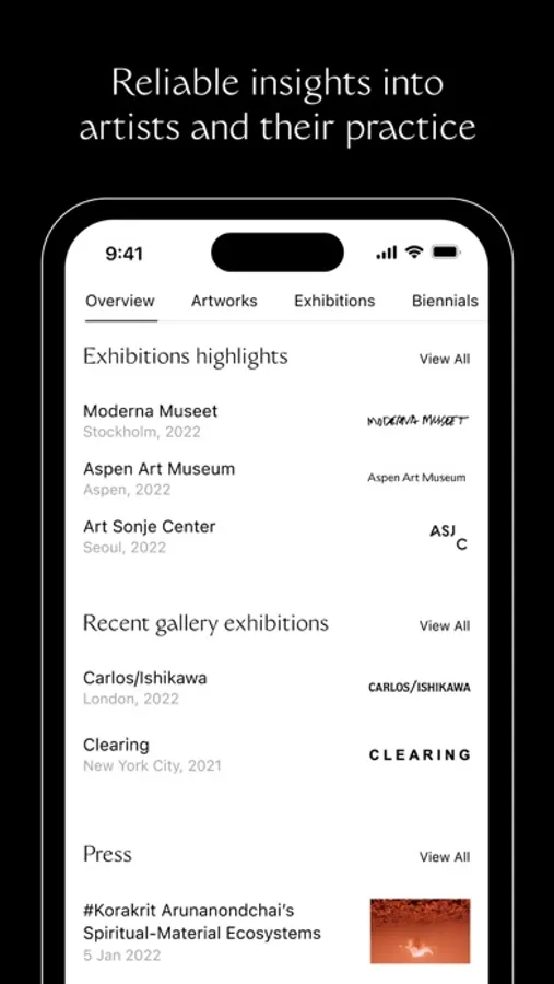 Gain Insights: Deepen your engagement with contemporary art through reliable insights into artists and their practice.