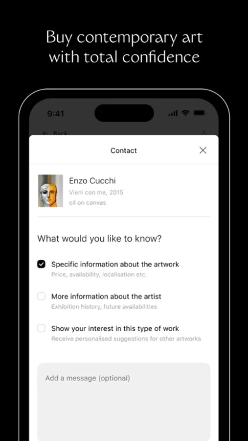 Collect with Confidence: Enjoy exclusive access to galleries worldwide, and purchase your favorite artworks.