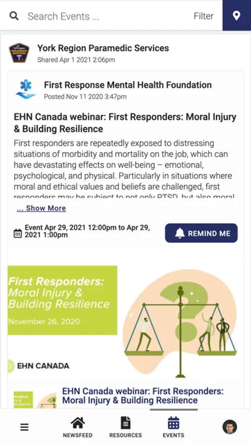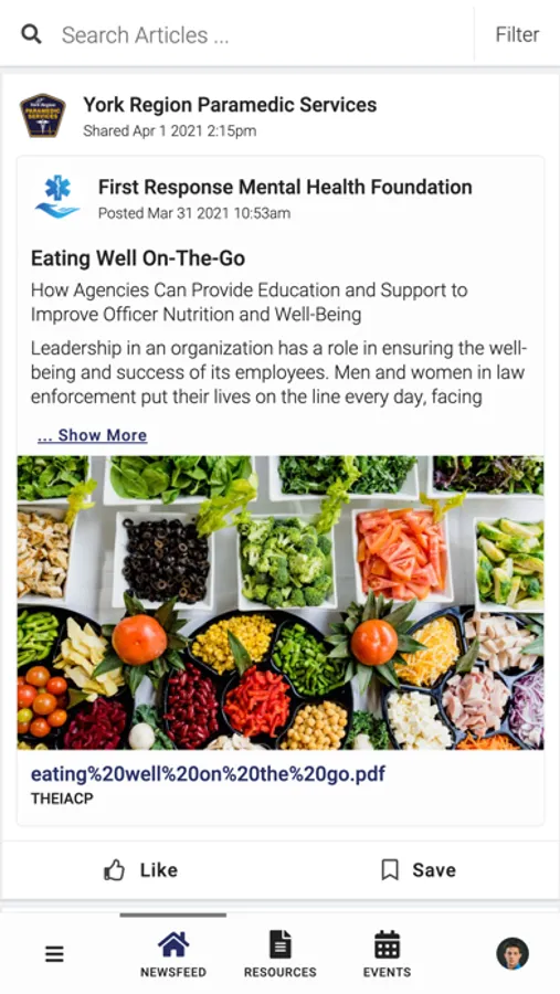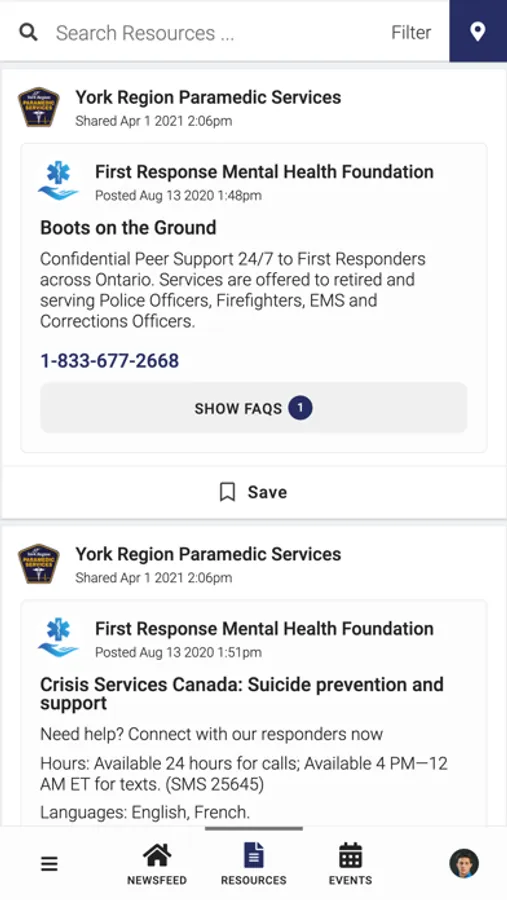 York Region PS PeerConnect connects the public to information about the York Region Paramedic Services' programming and services. Users have access to newsfeed articles, resources, and events related to mental health, wellness, culture, and belonging.