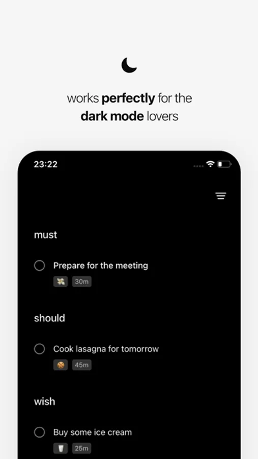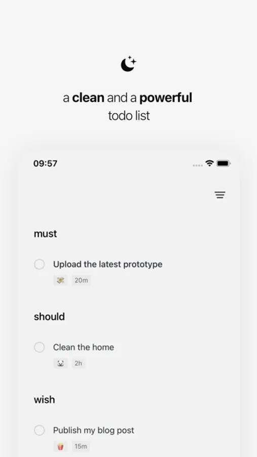 it's designed to make your life easier by only serving you what's needed. add your tasks smoothly and assign priorities, areas and estimates to your tasks effortlessly if you're willing to.