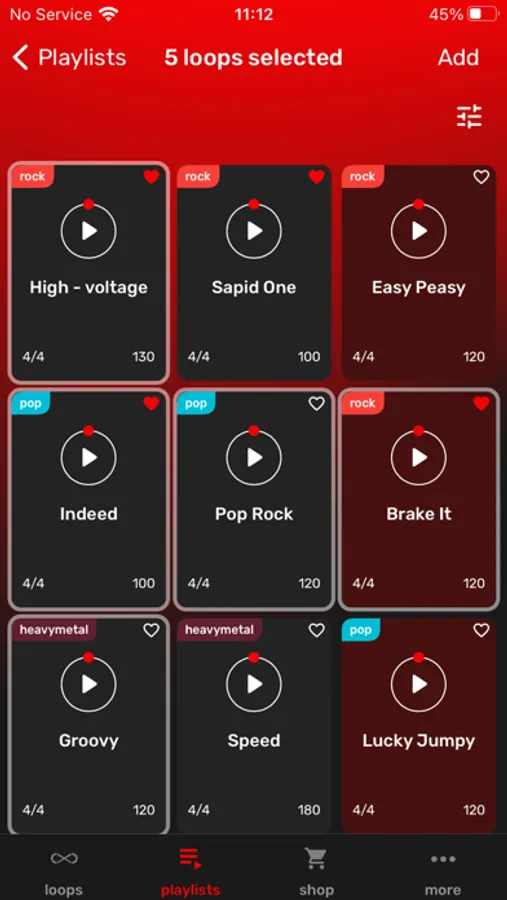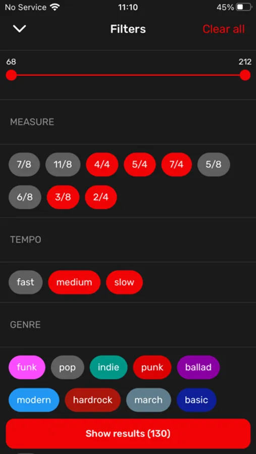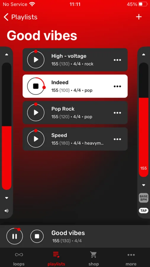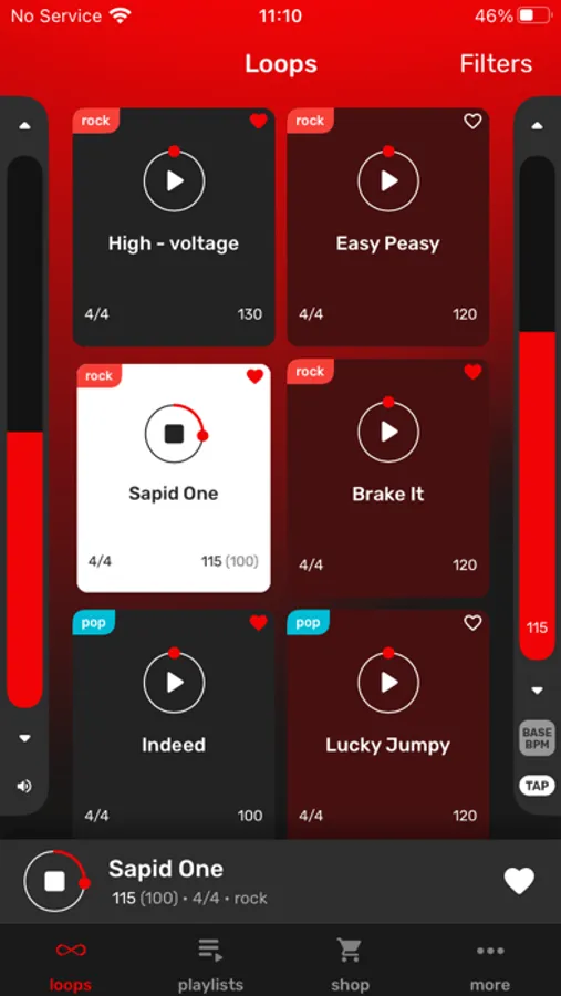 You can sort beats by BPM, genre (rock, hardrock, indie, punk, ballad, heavymetal, etc.), tempo, and others. If you want - choose your favorite tracks and make your own list.