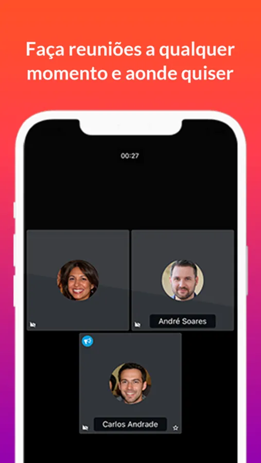 - Faça reuniões com áudio e vídeo com um ou mais membros da equipe esteja onde estiver na palma de sua mão;