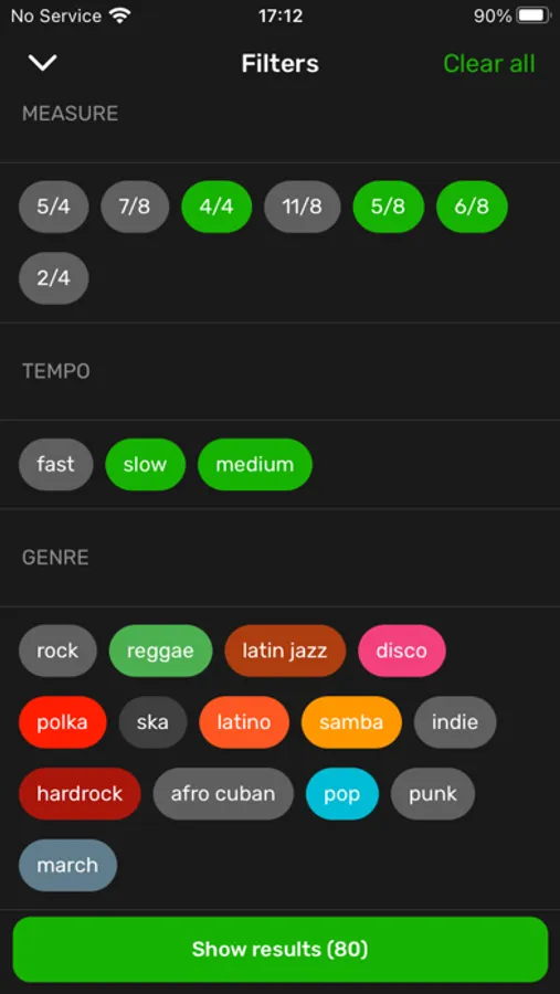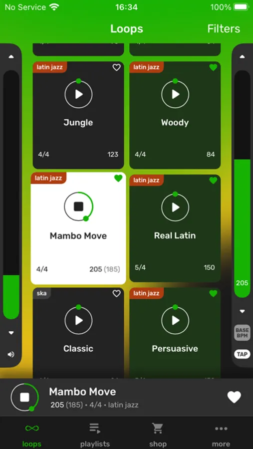 You can sort beats by BPM, genre (reggae, latin jazz, ska etc.), tempo, and others. If you want - choose your favorite tracks and make your own list.