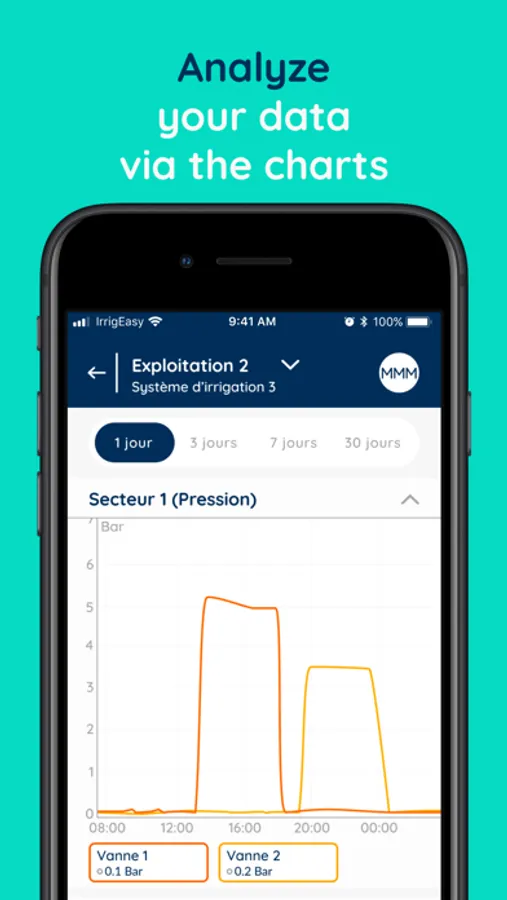 - Its intuitive interface is easy to use: enter your data from your smartphone, locate problem areas with alerts and follow your schedules directly from the app.