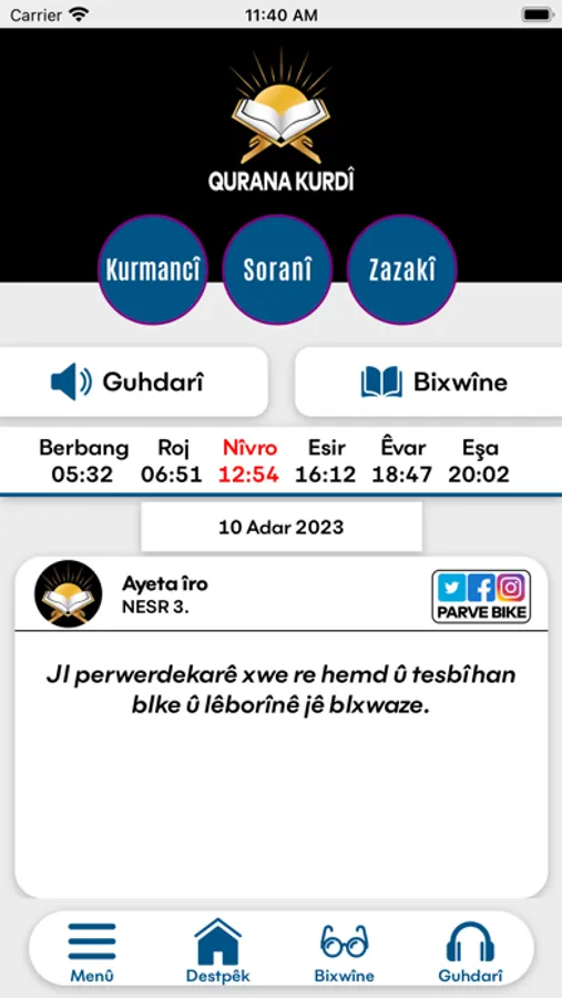 Kürtçe Kur'an Okuma ve Dinleme Uygulaması.