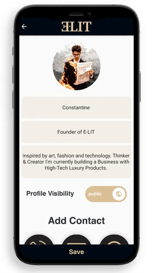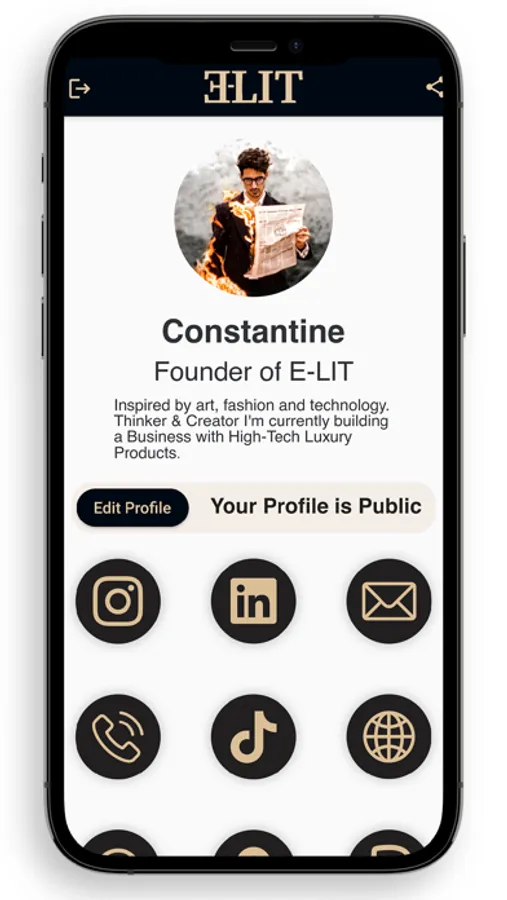 The E-LIT app enables you to easily access your E-LIT profile and choose what you share with your E-LIT Card. You can also make your E-LIT profile Private if you wish.
