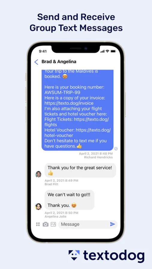 Textodog is a group text messaging platform that allows sales and customer service teams to deliver happiness to couples, families and friends by keeping everyone in the loop.