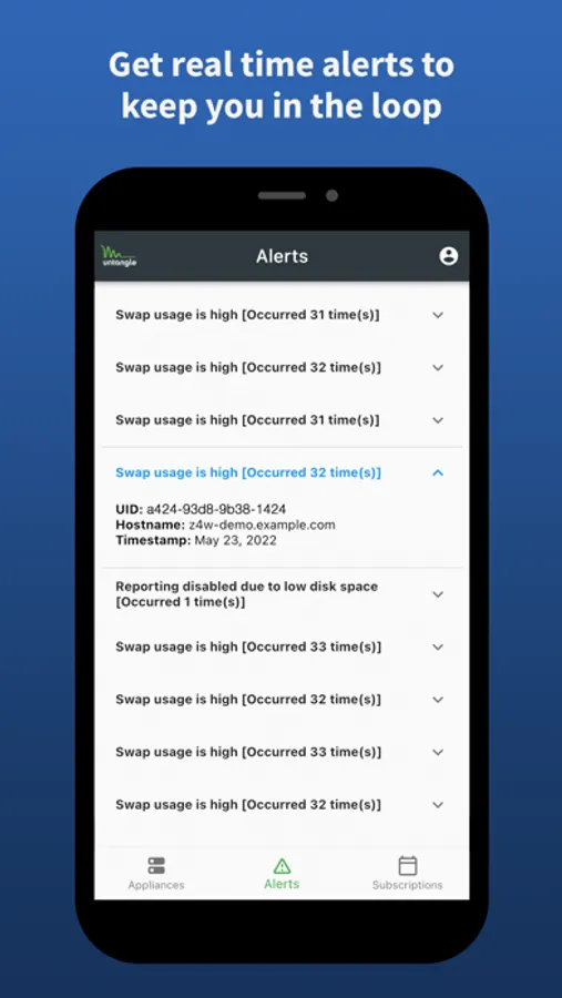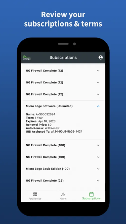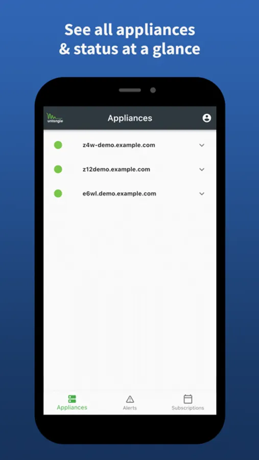 Untangle Go gives IT administrators visibility of the Arista Edge Threat Management appliances and subscriptions they manage with ETM Dashboard. Untangle Go allows you to view information about your appliances and subscriptions including status, alerts and system resources from your mobile device. Untangle Go compliments ETM Dashboard, but is not a replacement. We welcome your feedback.