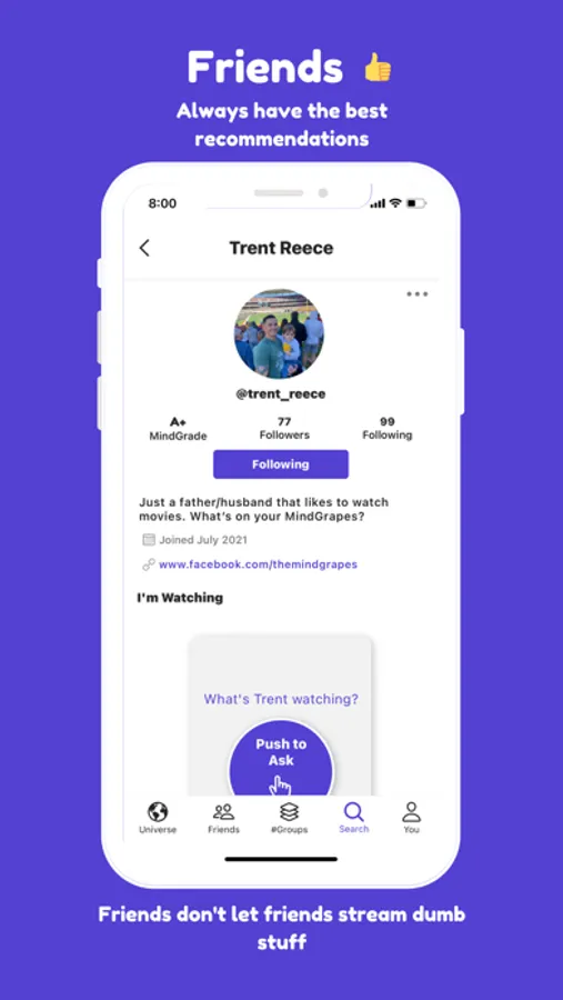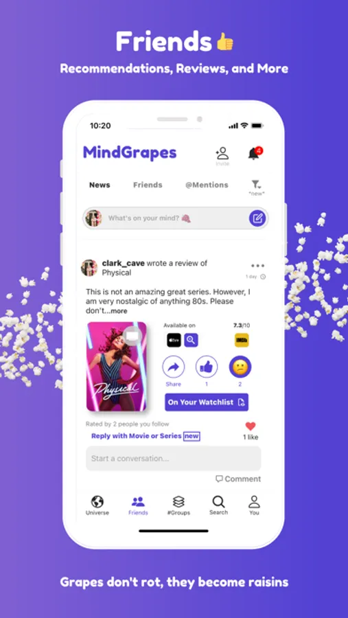 Most of us already get our streaming recommendations from friends and family; we merely help start the conversation, "What's on your MindGrapes?"
