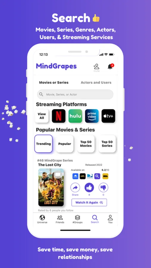 Life is too short to waste time searching for your next movie or binge. MindGrapes is your antidote. Need something to watch? Your best friend just gave a double thumbs up to ‘The Offer’ on Paramount+. Perfect timing! Did you forget the name of the series Collin D. recommended at work? No, you didn’t! Because you added it to your MindGrapes watchlist- it’s playing on AppleTV+ BTW ;).