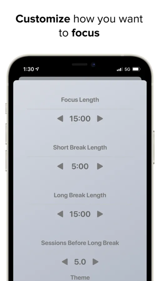 You can customize your focus and break time, and adjust the amount of focus sessions before a long break, all within a beautiful UI that has dark mode and light mode options.