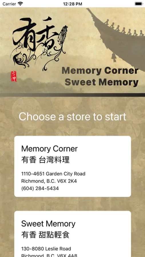 Mobile ordering app for Memory Corner / Sweet Memory, B.C.