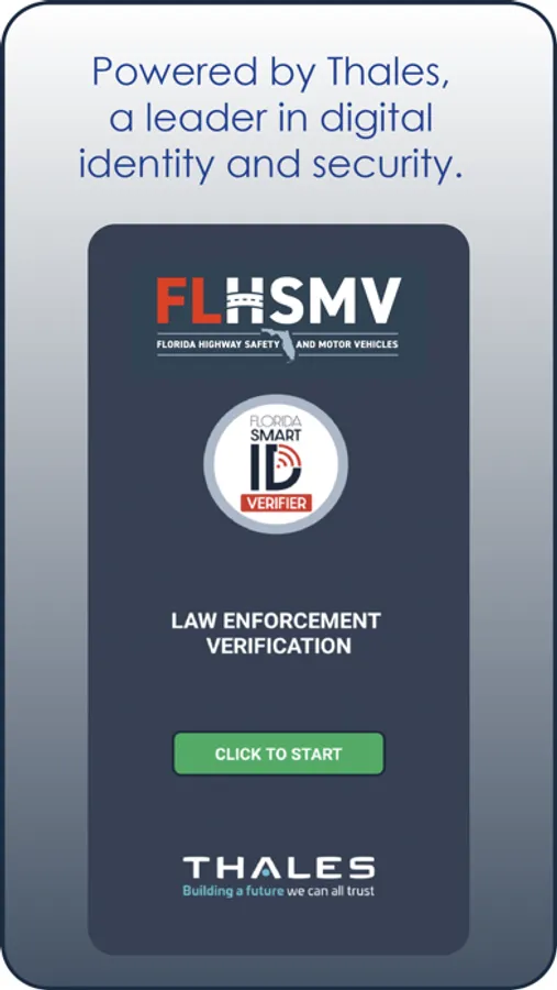Florida Smart ID LE Verifier by Thales is the official app for Law Enforcement officers to authenticate a Florida Smart ID for proof of identity and driving privileges.
