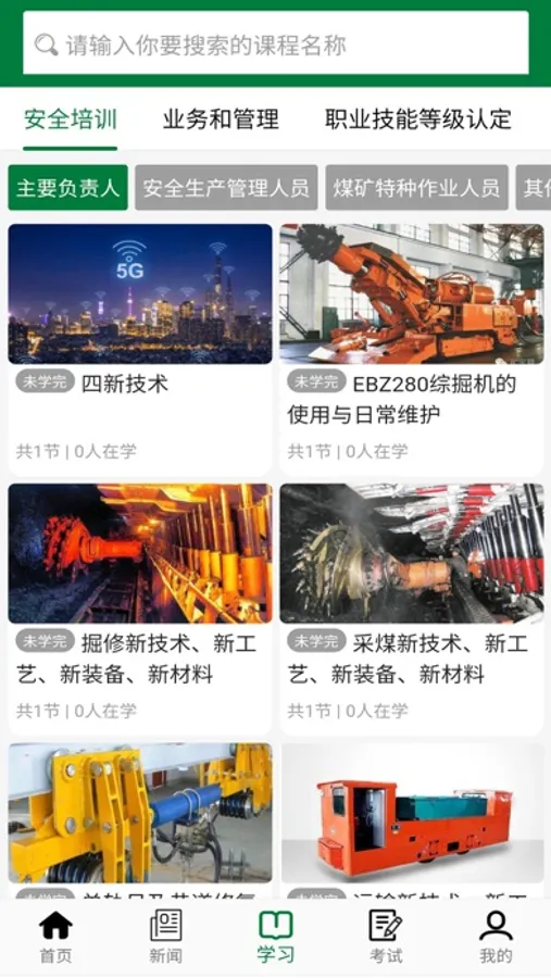 职工学习平台是一个为工作者进行各种技能、安全等培训的APP,它主要包括五个部分: