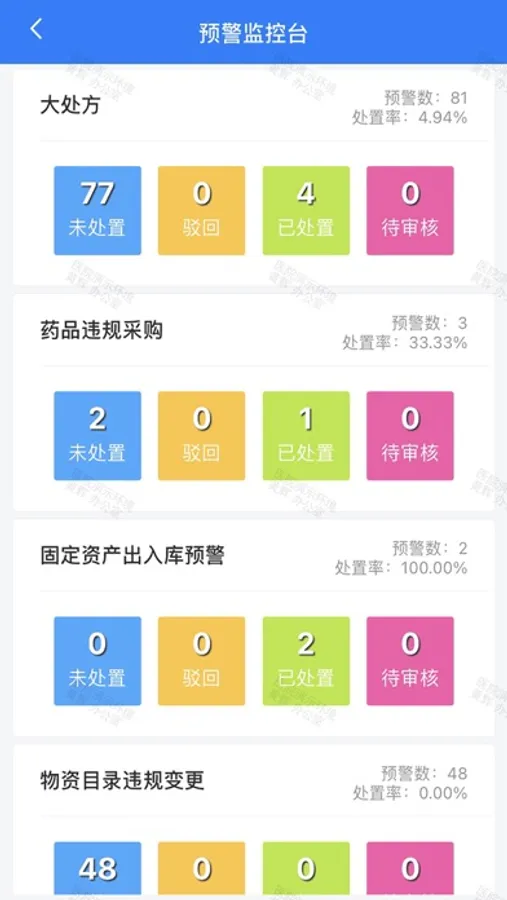 ● 风险的预警与处置:指标负责人对风险进行在线处置,由职能及监管部门通过平台对各项风险的预警处置情况进行动态监督。