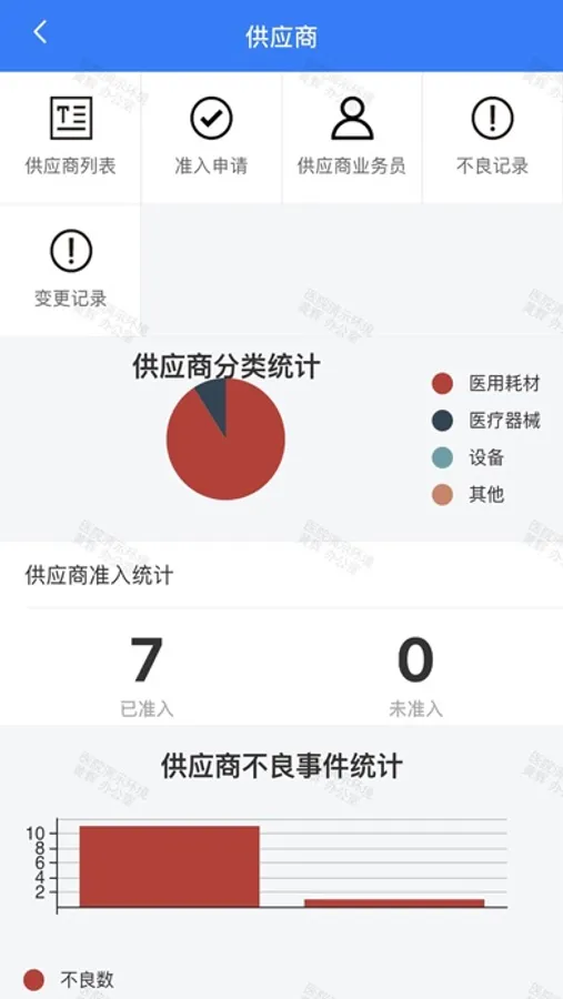 ● 建立供应商诚信档案:系统为每个与医院发生业务往来的供应商建立诚信档案并进行准入管理;通过与业务流程的联动规避未经准入的供应商与医院发生购销行为。