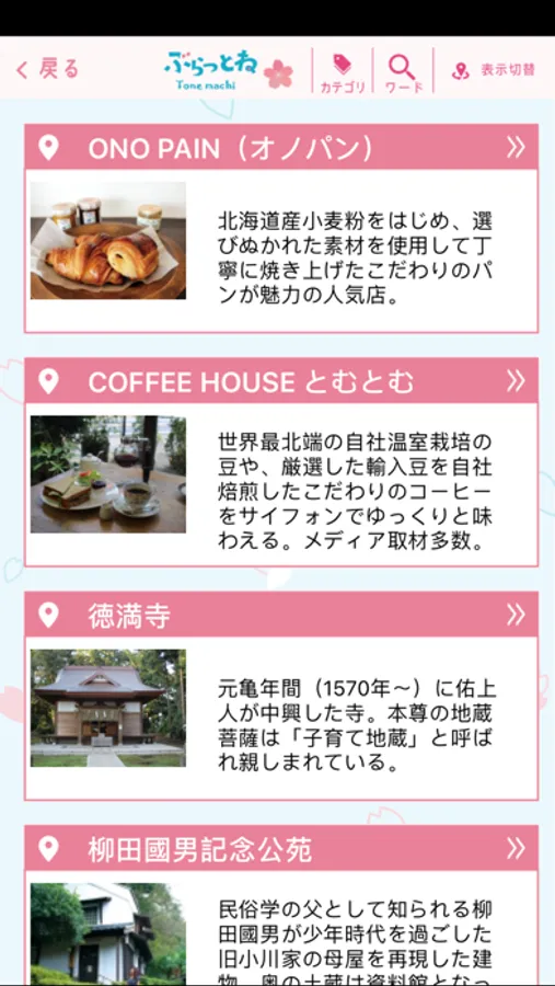 ○利根町内の観光地、グルメ、買い物情報等が満載!現在地周辺からの検索や、カテゴリーでの検索、GPSを用いたナビゲーションが可能