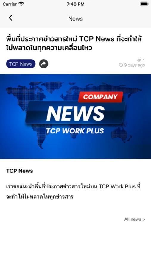 TCP Work+ รวมทุกบริการในแอปเดียวให้คุณทำงานง่ายขึ้น ทั้งนัดประชุมหรือแชทกับเพื่อนร่วมงาน ลงเวลาเข้า-ออก เบิกค่าล่วงเวลาและสวัสดิการ ดูสลิปเงินเดือน และอีกมากมาย ให้ชาว TCP “รุก บวก สุดพลัง” ได้ทุกที่ ทุกเวลา