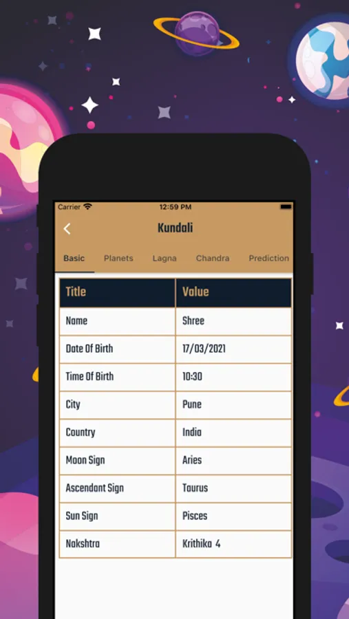 Bhrugu Astrology also provides detailed horoscope which where we provide 30 Pages Complete Horoscope / Kundali to you by Mail as well as in App within 24 HR.