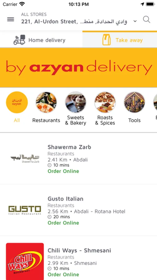 Whether you’re looking for a dish or sandwich to feed your cravings, surprise your loved ones with a gift, or maybe some tools for your next DIY project, Azyan is the only app you need for the quickest doorstep delivery of all your needs in Amman, Jordan. No need for delivery? you can easily create an order for takeaway and pick it up on your way.