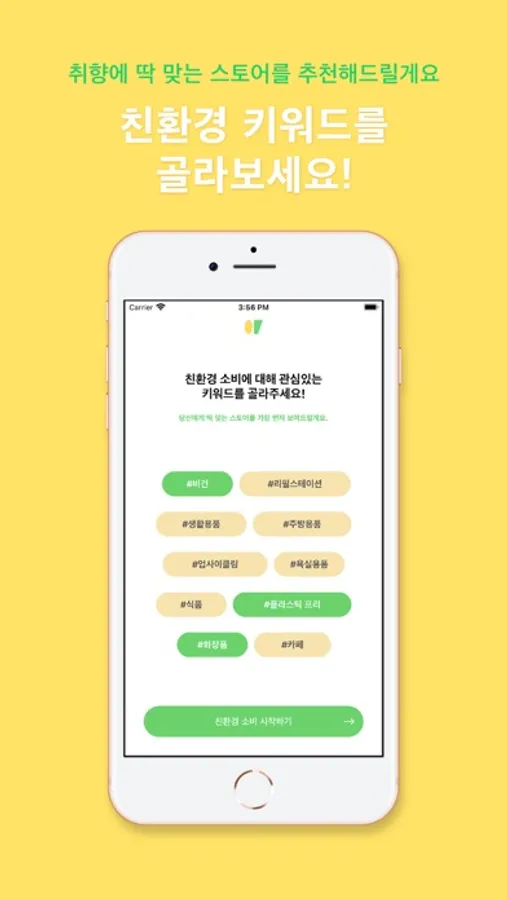 친환경 키워드를 골라보세요! 취향에 딱 맞는 스토어를 추천해드릴게요.