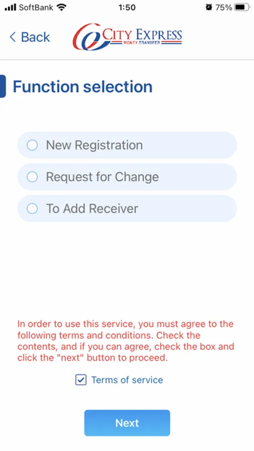 1. Membership registration for Remittance Service