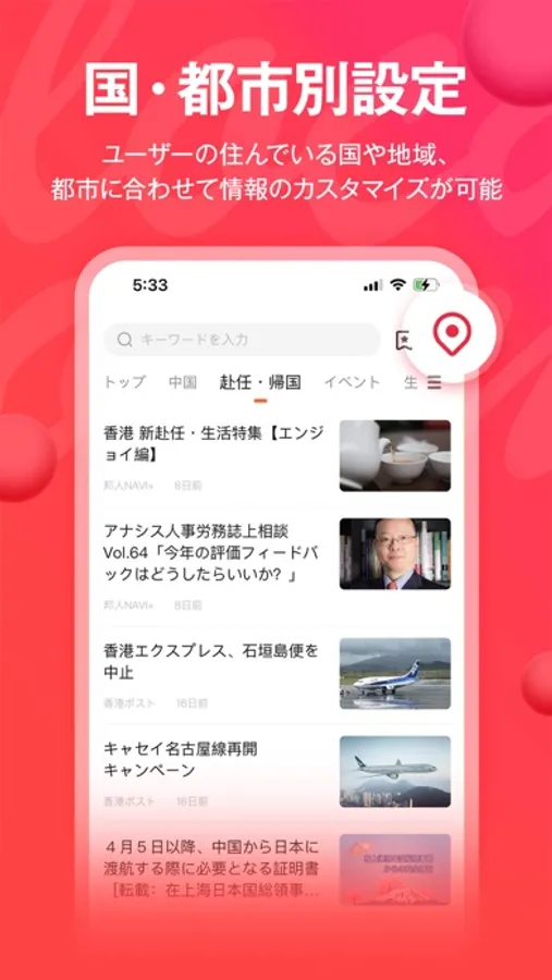 ユーザーがお住まいの国や地域、都市によって情報をカテゴライズ。ローカル情報の収集の効率化や円滑なコミュニケーションに役立ちます。