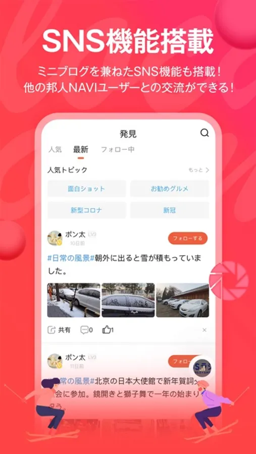 誰もが参加可能な「ミニブログ」。動画、画像、つぶやきを通して、同じ趣味を持つ人や同郷の仲間とつながり、交流が楽しめます!