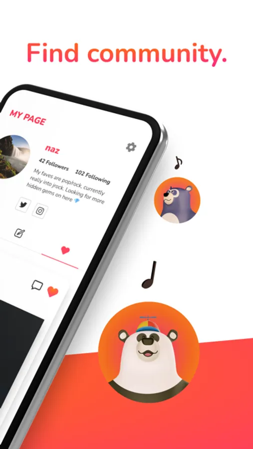 Follow people with similar tastes. Meet new friends and experience music together. Use tokens on the app to enliven your community.