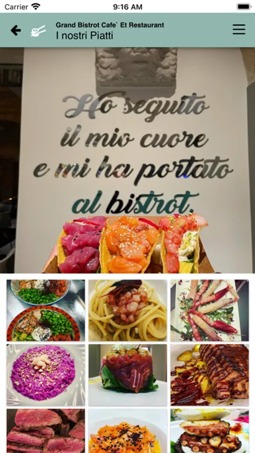 - Sfoglia tutte le nostre portate dal tuo smartphone e comincia a gustare con gli occhi le nostre pietanze.