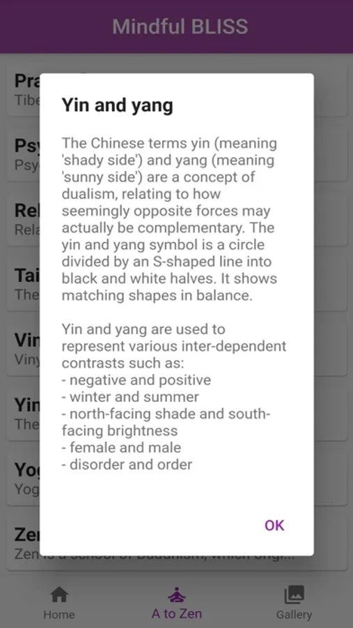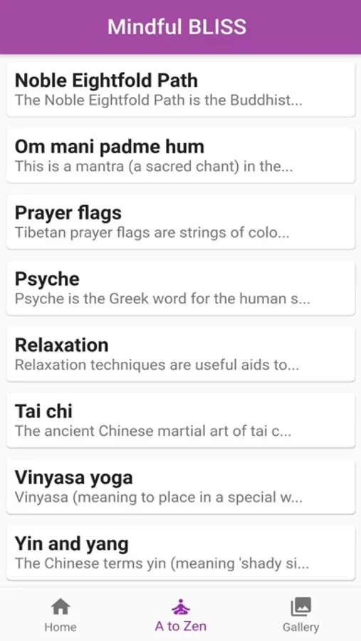 BLISS displays just one calming thought and image each day. This is deliberate to allow your mind to focus on the meaning of the message for you and to digest it.