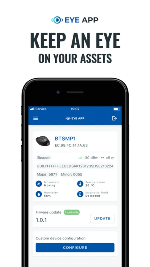 EYE App Teltonika – this application is made for swift configuration, firmware updates and data monitoring on the go gathered from Teltonika EYE beacons and sensors.