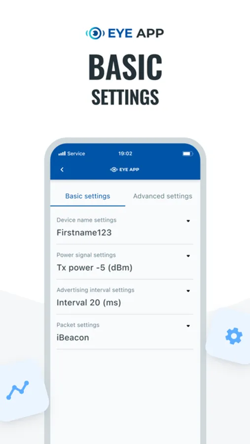 - Name configuration: Device name, Eddystone ID, iBeacon ID.