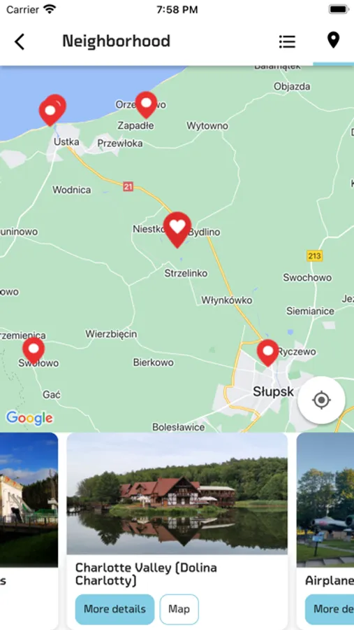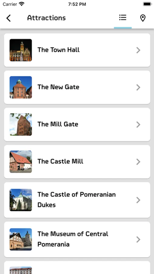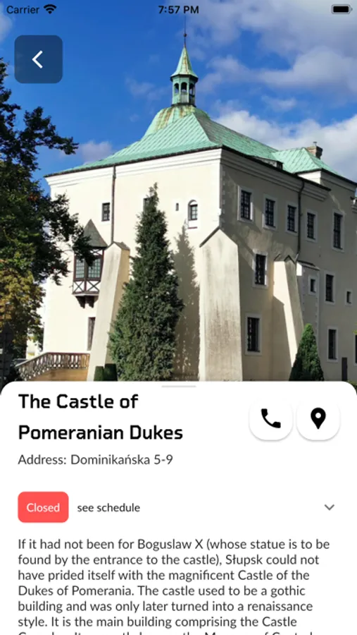 The app features an interactive map, which will help you find your way to places of interest mentioned in the respective sections of the app.