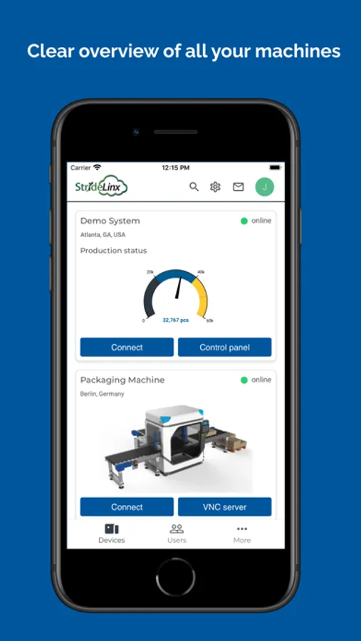 StrideLinx Portal is the new mobile app for StrideLinx Cloud, allowing for easy and secure access to your machines, equipment and installations all over the world via any mobile device.