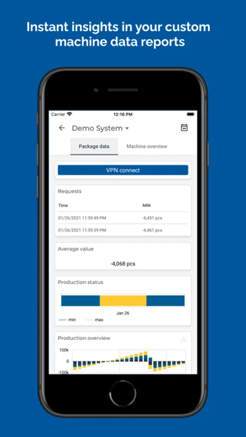 • Push notifications with real-time updates about important machine warnings, alarms or events