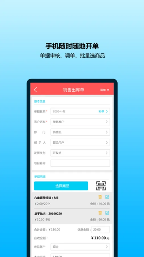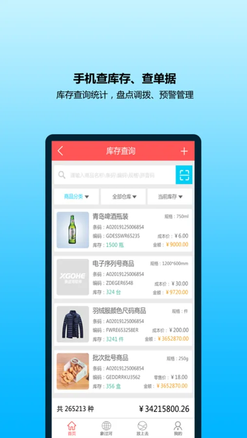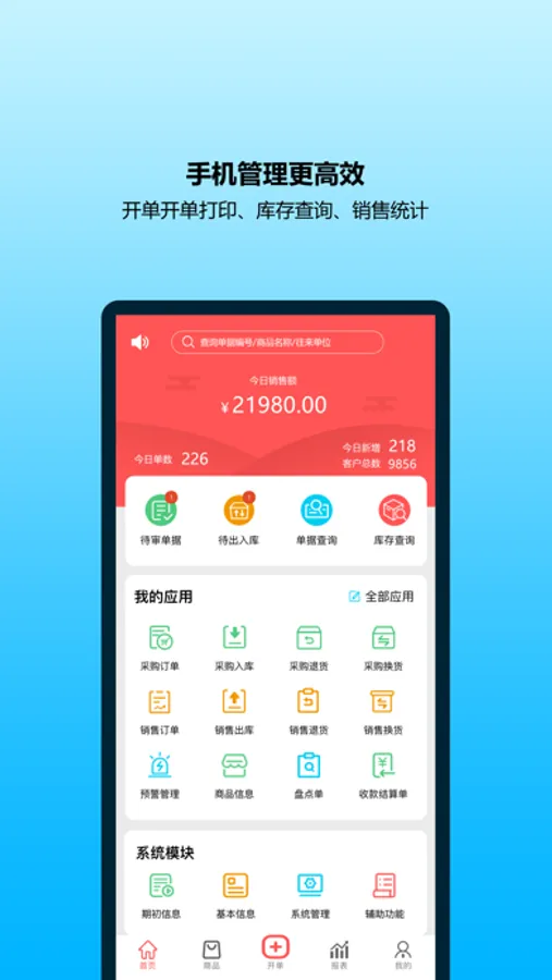 象过河进销存手机版,包含公司采购管理、销售管理、库存管理、收付管理、财务报表、基本信息管理,以及打印模板设置。结合服务端权限管理帮助管理者对公司管理划分不同的权限,实现多层次管理