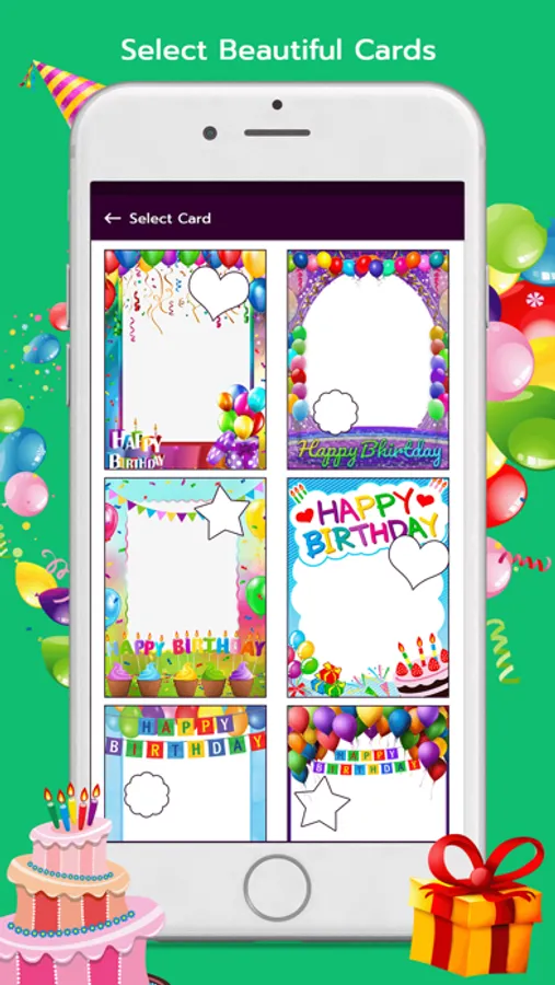 - Choose photos from your card gallery/camera and crop it to suitable size or decorate it simply on given photo frame automatically!