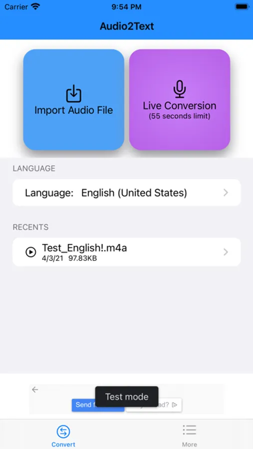 2. Support live conversion(with 55 seconds limit).
