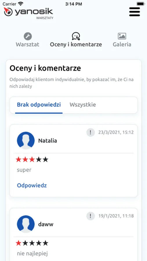 - nawigacja w aplikacji Yanosik poprowadzi prosto do Twojego warsztatu,