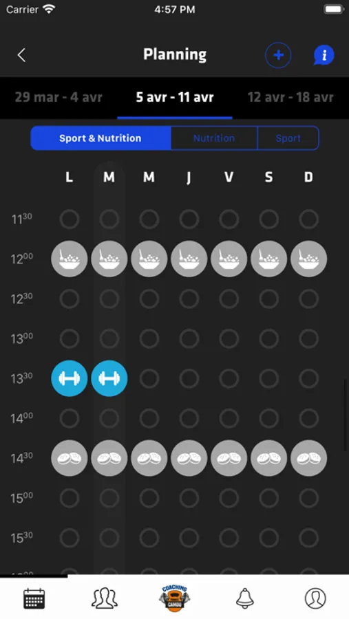 Vous aurez dans votre planning vos plans de forme physique et vos régimes sont/ou vos plans nutritionnels avec la possibilité de marquer vos performances sportives et vos progrès en matière de prise de poids et/ou de perte de poids.