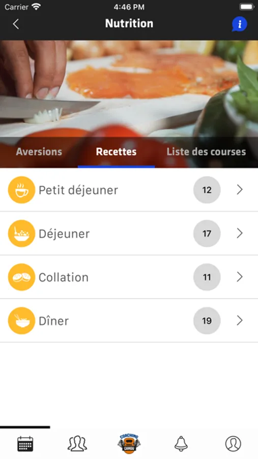 Vous avez accès à la composition nutritionnelle sur chaque aliment, vous pouvez planifier votre liste de courses alimentaires en adéquation avec votre plan notionnel et vous aurez une banque d’exercice avec des commentaires très détaillés du pourquoi et du comment sur chaque exercice.