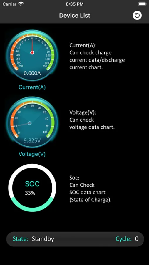 2- Display charge/discharge current, cell/ pack voltage and capacity charts.